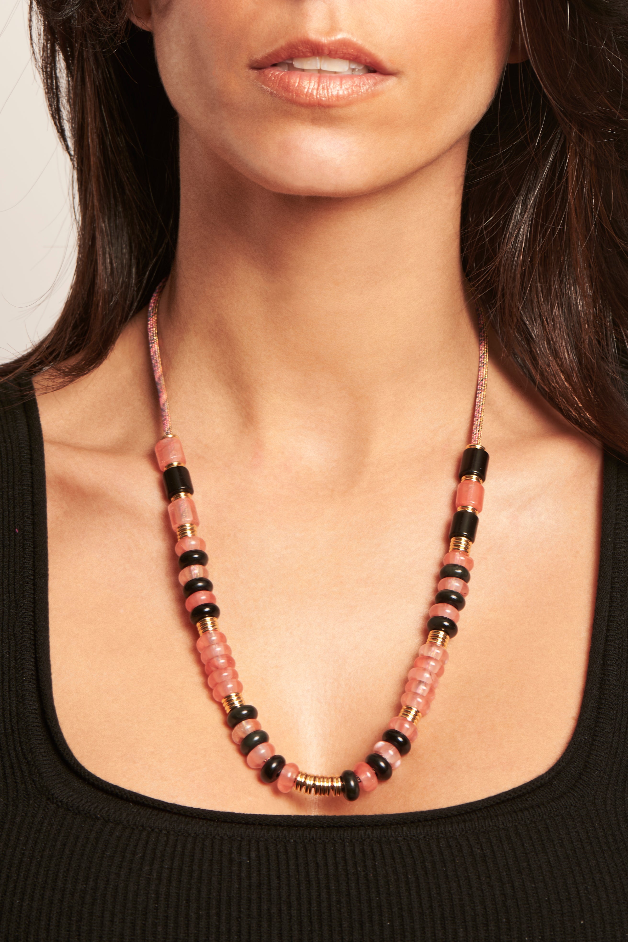 - Pearls: Gold plated (3 microns) and silver sometimes interfere to punctuate and highlight the brilliance of this succession of colored stones.