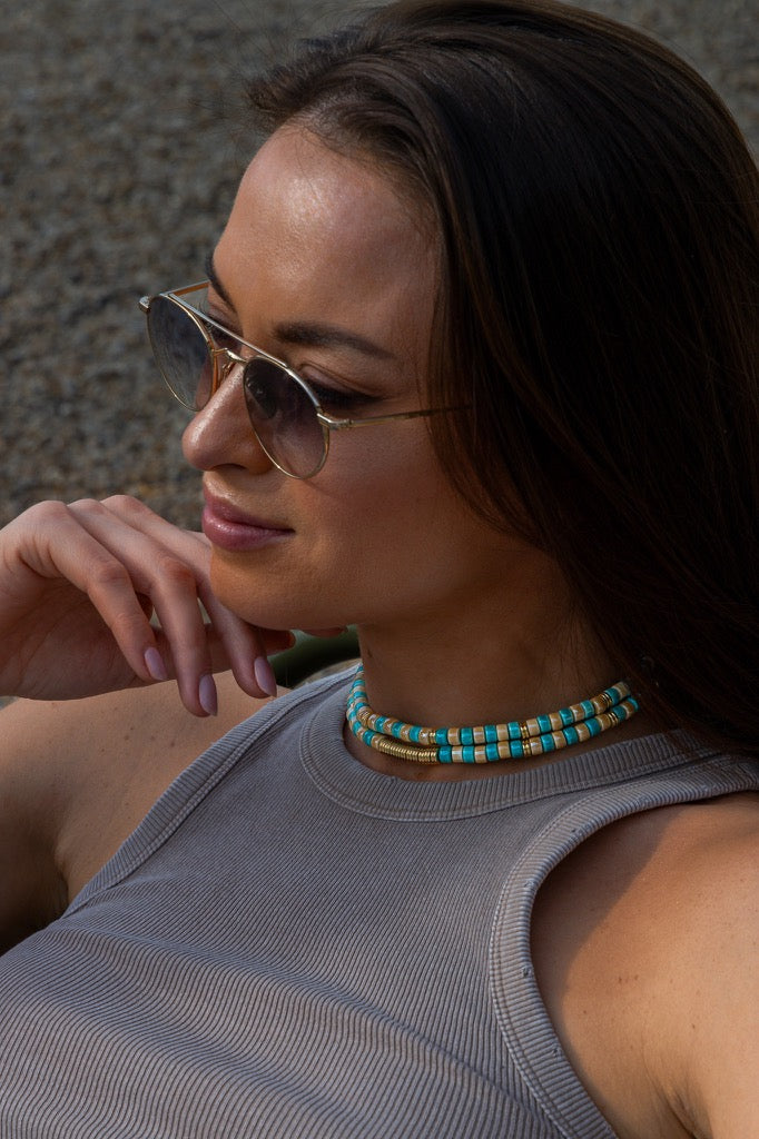 Le collier "DOUBLE TOUR" CALIFORNIA SAND est composé de 140 perles de céramiques